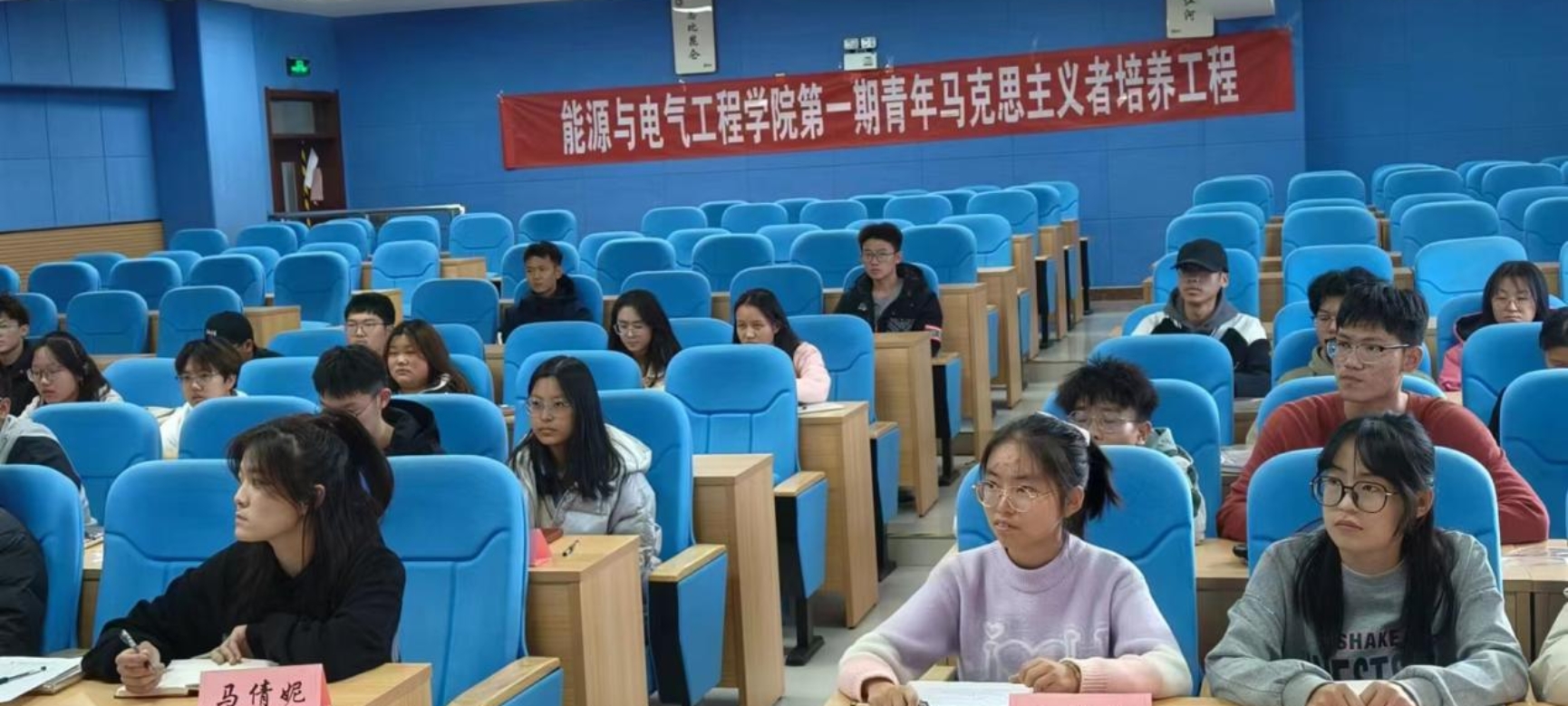 仪式开始,关龙飞同学作为学生代表上台发言,分享自己参加青年马克思主义者培养工程的初衷和期望,表达对学习马克思主义的热情和决心。接着,刘秉盈同学举行开班仪式,正式宣布青年马克思主义者培养工程正式启动。全体学员共唱团歌,表达对马克思主义的忠诚和对党的事业的坚定支持。