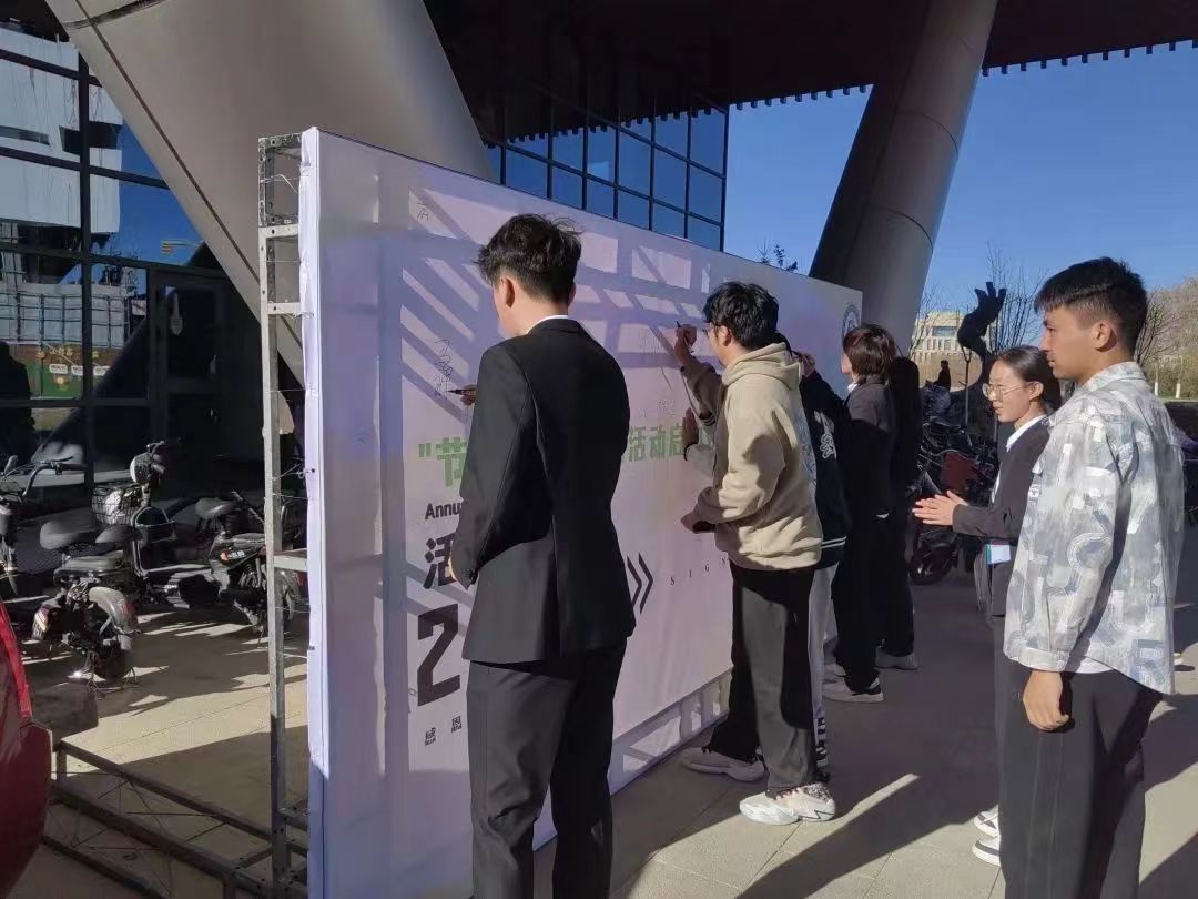 共青团雷速体育 “环保减碳进行时”——2023年绿色生活月系列活动于11月5日至11月25日顺利举行。本次活动雷速体育 领导高度重视,并且与同学们一同参加此次启动仪式,其中院党委副书记杨新存发表讲话,表达了对雷速体育 的未来的期待与对此次活动的美好祝愿,各位领导与同学们一同观看节能减排宣传短片,并由领导亲自颁发节能减排宣传大使聘书,举行授旗仪式,还与同学们一同前往签名墙签名留念。